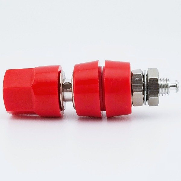 Insulated washers are molded polycarbonate and completely insulate post from panel. Keyed to panel and body to prevent rotation.