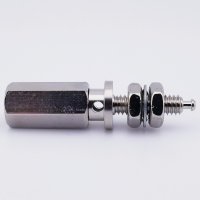 To connect circuit, wrap wire around solder turret or attach to solder lug between nuts (lug not supplied).